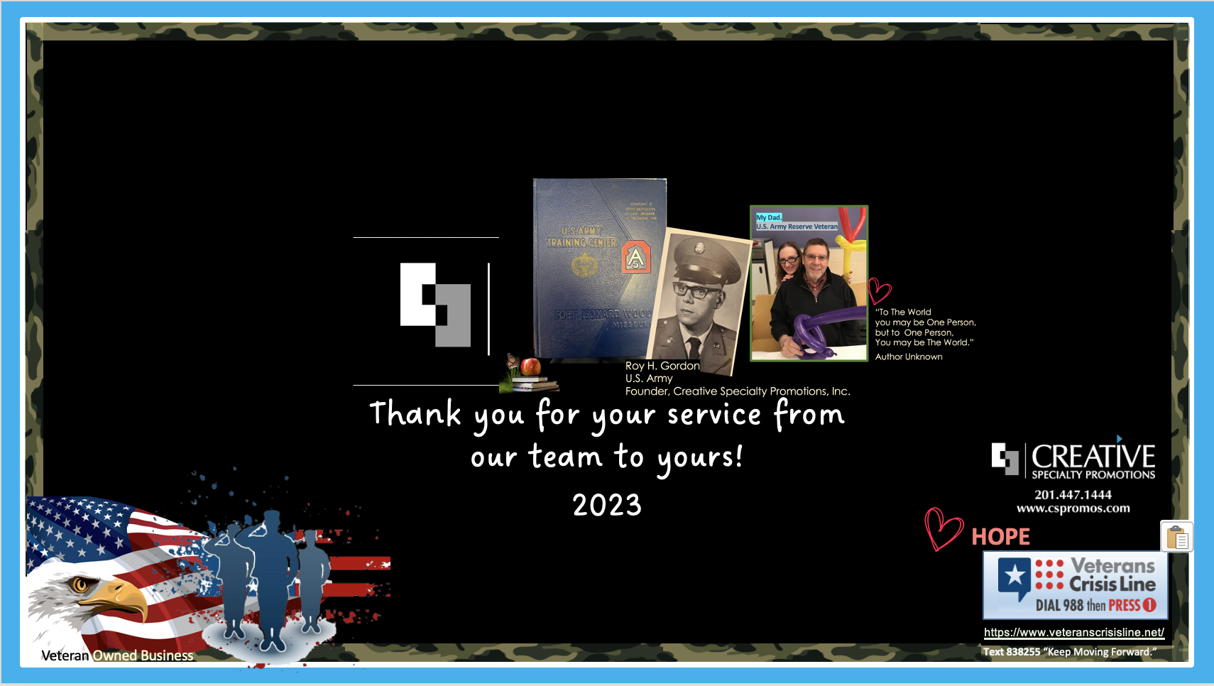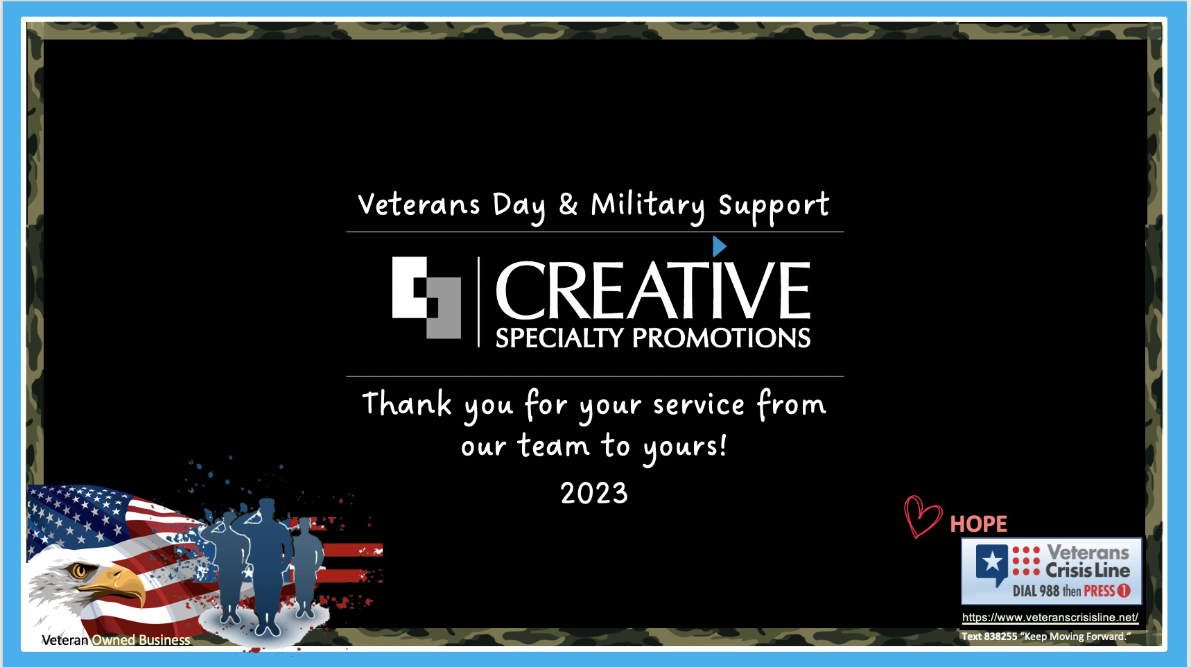 VETERANS & MILITARY PROGRAMS w/ CREATIVE SPECIALTY PROMOTIONS, INC., A VETERAN-OWNED FAMILY BUSINESS.
